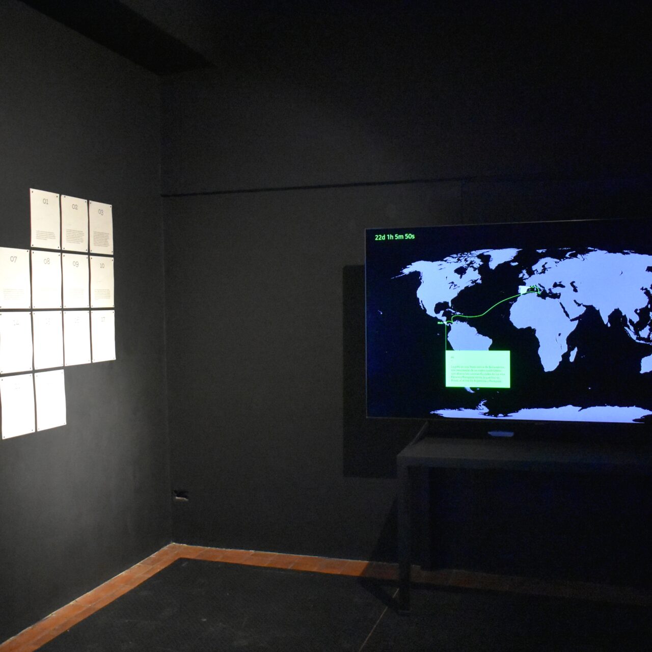 Carrasco muestra dicha ruta en tiempo real desde la inauguración de esta exposición hasta su clausura, a través de una infografía en la que hace seguimiento al viaje de un contenedor marítimo de piña desde Puerto Moín hasta su destino final: Barcelona. La animación se acompaña de 22 fichas impresas a modo de calendario que, en cada uno de los días del viaje, aporta información del cultivo, exportación y consumo de dicha fruta.