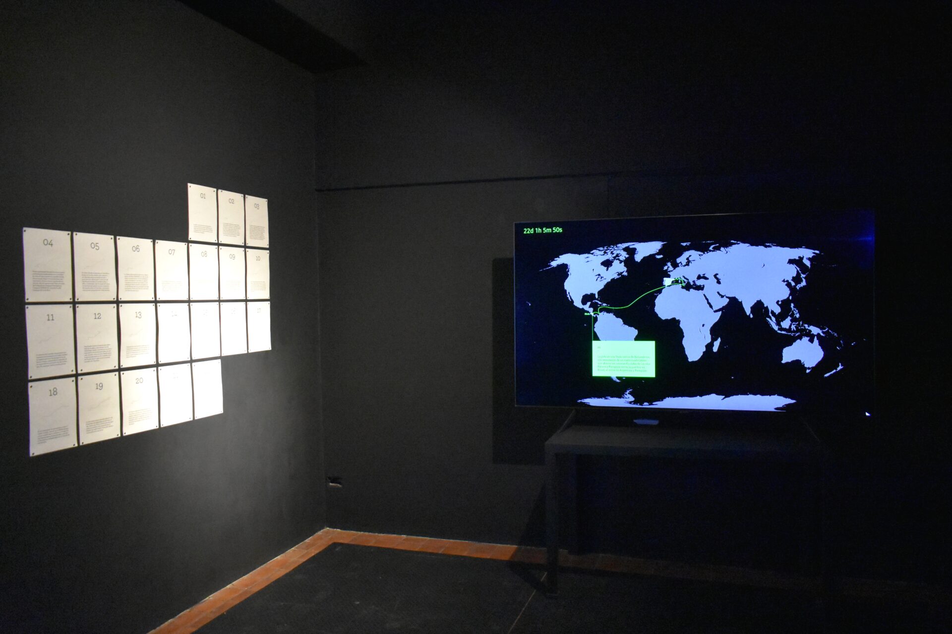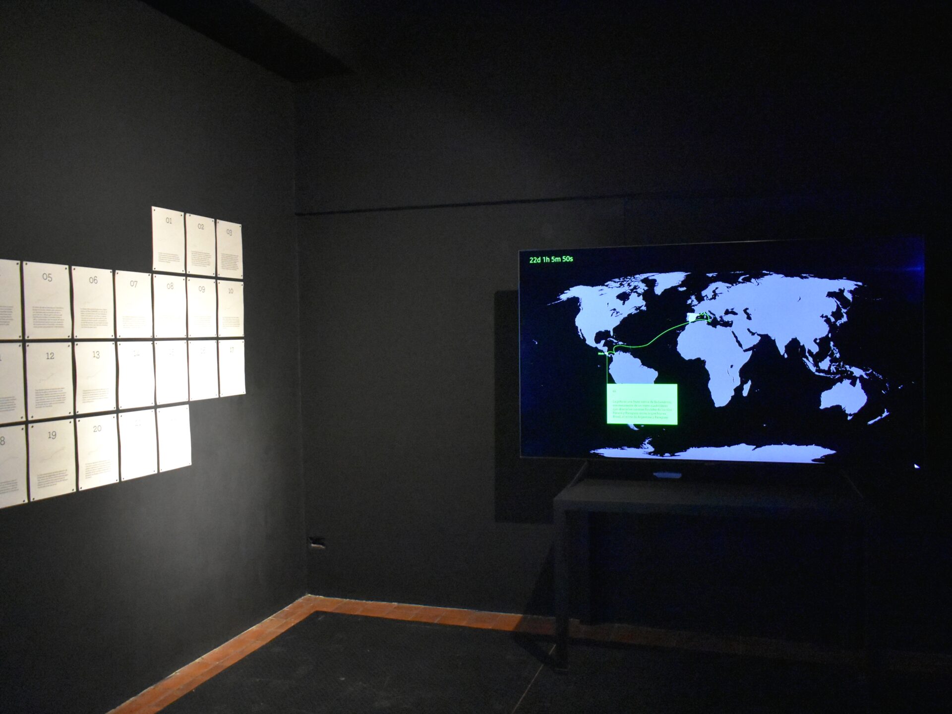 Carrasco muestra dicha ruta en tiempo real desde la inauguración de esta exposición hasta su clausura, a través de una infografía en la que hace seguimiento al viaje de un contenedor marítimo de piña desde Puerto Moín hasta su destino final: Barcelona. La animación se acompaña de 22 fichas impresas a modo de calendario que, en cada uno de los días del viaje, aporta información del cultivo, exportación y consumo de dicha fruta.